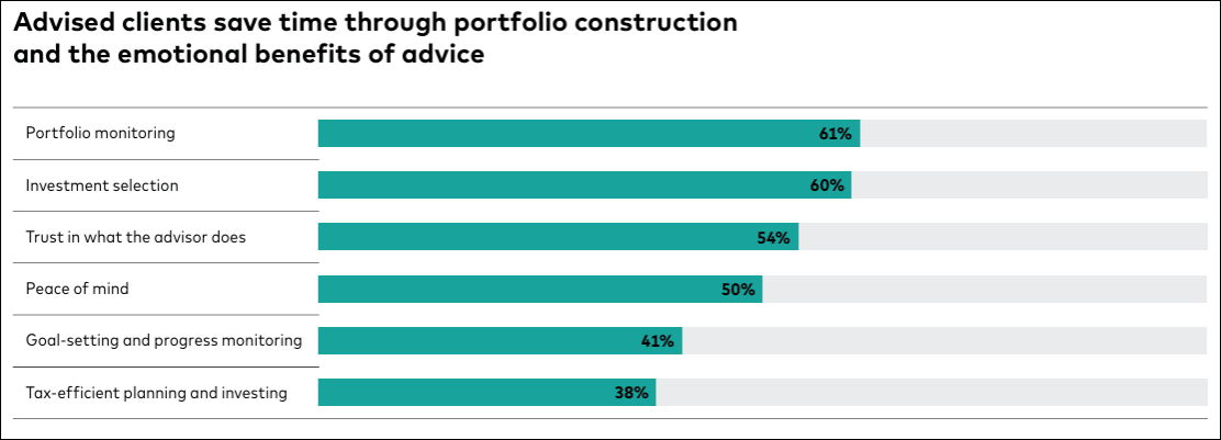 - Time Savings: 76% of advised clients reported that working with an advisor saves them time, with a median time savings of 2hrs/week. Over a year, that equates to more than 100 hours of time returned to you.